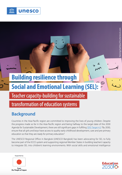 08 May 2024 Countries in the Asia-Pacific region are committed to improving the lives of young children. Despite the progress made so far in the Asia-Pacific region and being halfway to the target date of the 2030 Agenda for Sustainable Development, there are still significant gaps in fulfilling SDG Target 4.2: 'By 2030, ensure that all girls and boys have access to quality early childhood development, care and pre-primary education so that they are ready for primary education.'The UNESCO Regional Office in Bangkok (UNESCO Bangkok) has been advocating for SEL to fully become part of the ECCE system and supporting regional Member States in building teachers’ capacity to integrate SEL into children’s learning environments. With social skills and emotional intelligence taught in schools early, children will gain knowledge, skills, and attitudes to develop healthy identities, manage emotions, and achieve personal and collective goals. This can positively contribute to society and transformative resilience through enhancing civic engagement.